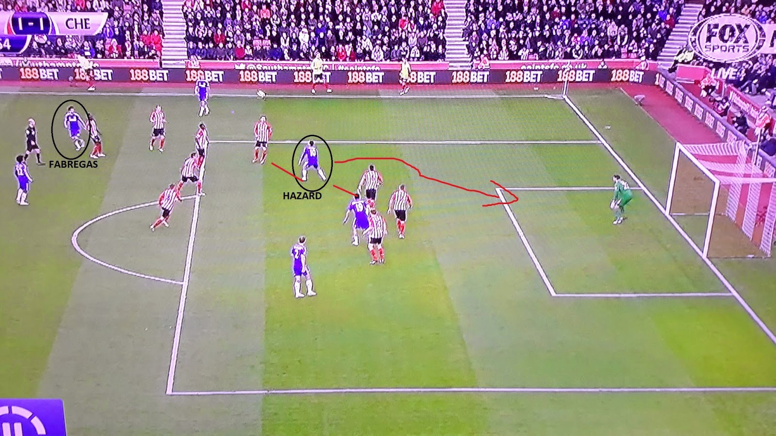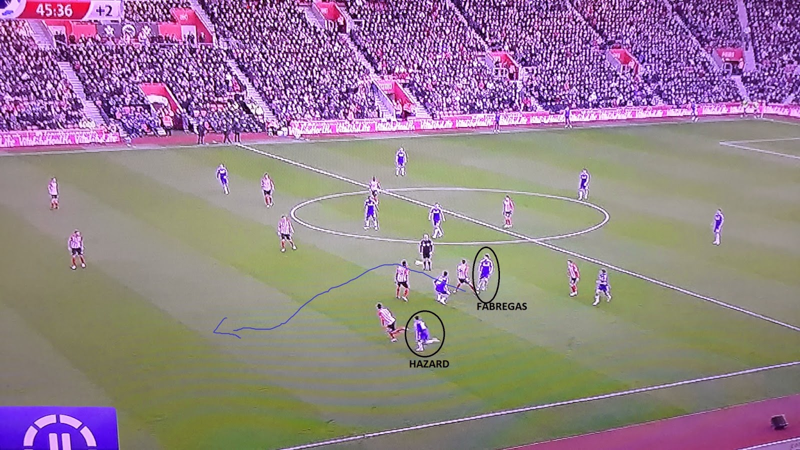 Hazard e Fabregas si trovano a meraviglia. In particolar modo è sorprendente il modo in cui i meccanismi tra i due giocatori siano studiati a tavolino: Hazard si smarca e Fabregas riesce sempre a trovarlo libero. Poi al belga bastano pochi metri e pochi istanti per girarsi e colpire in porta: lasciare liberi questi due campioni rappresenta un vero e proprio suicidio tattico.