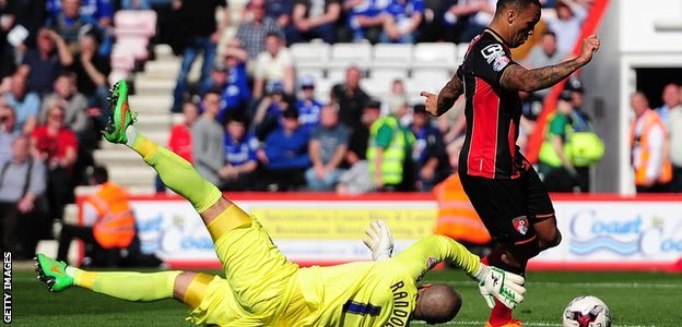 Callum Wilson salta Darren Randolph e sigla il suo ventesimo gol stagionale con la maglia dei Cherries (Foto BBC Sport).