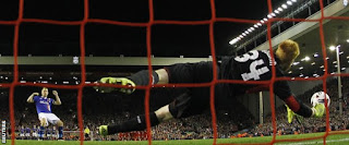 depositando la palla alla destra di Lindegaard.