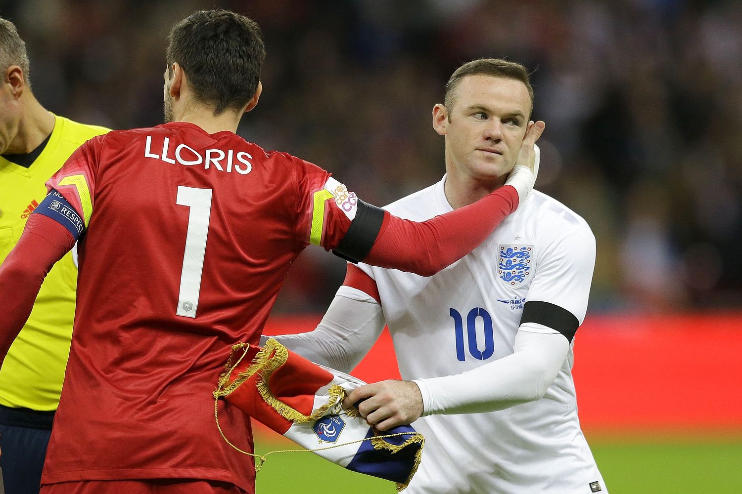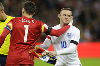 I due capitani Lloris e Rooney prima del calcio d’inizio.