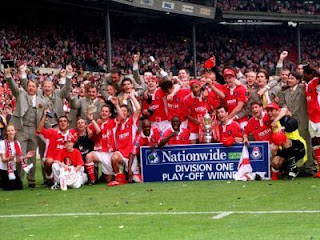 Il Charlton vittorioso a Wembley, nella finale contro il Sunderland nel 1998.