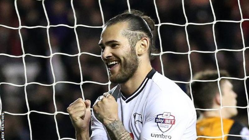 L’esultanza di Bradley Johnson: il Derby County travolge l’Hull City 4-0.